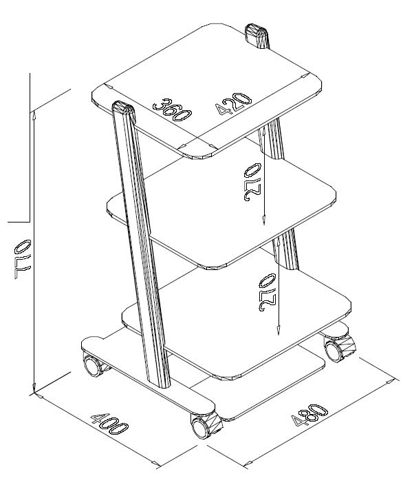 Mit seinen kompakten Maßen von 80 × 60 × 45 cm (H × B × T) lässt sich der Gerätewagen flexibel in nahezu jede Praxiseinrichtung integrieren. Die solide Konstruktion trägt bis zu ca. 50 kg Gesamtgewicht und sorgt für sicheren Stand – auch bei voller Beladung.