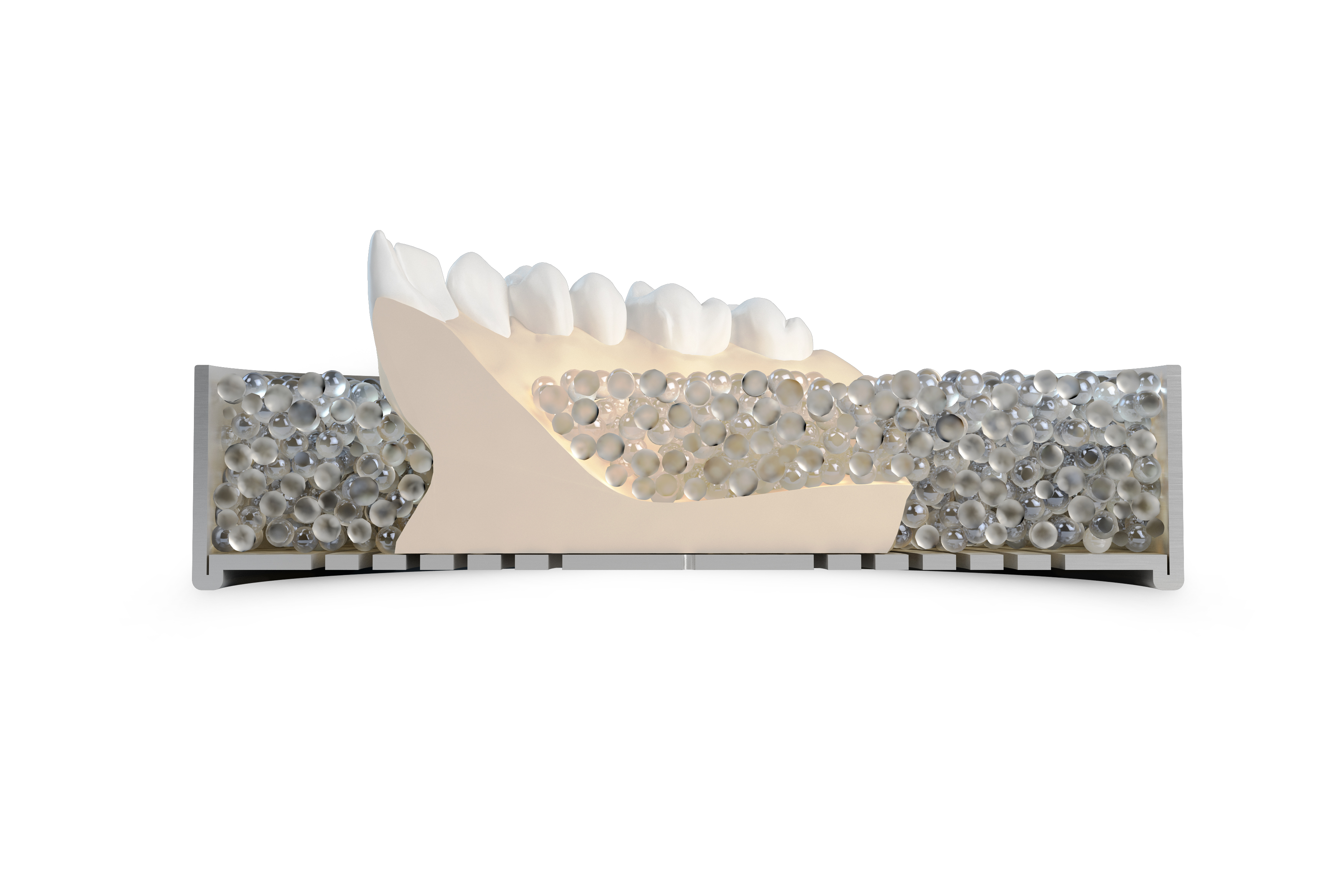 Das Glasfüllgranulat eignet sich für alle gängigen Tiefziehgeräte und wird insbesondere in der Herstellung von Kunststoffschienen (z. B. Retainer, Bleaching-Schienen, KFO-Schienen) eingesetzt. Es gewährleistet eine stabile Positionierung des Modells und optimale Wärmeleitung im Vakuumprozess.