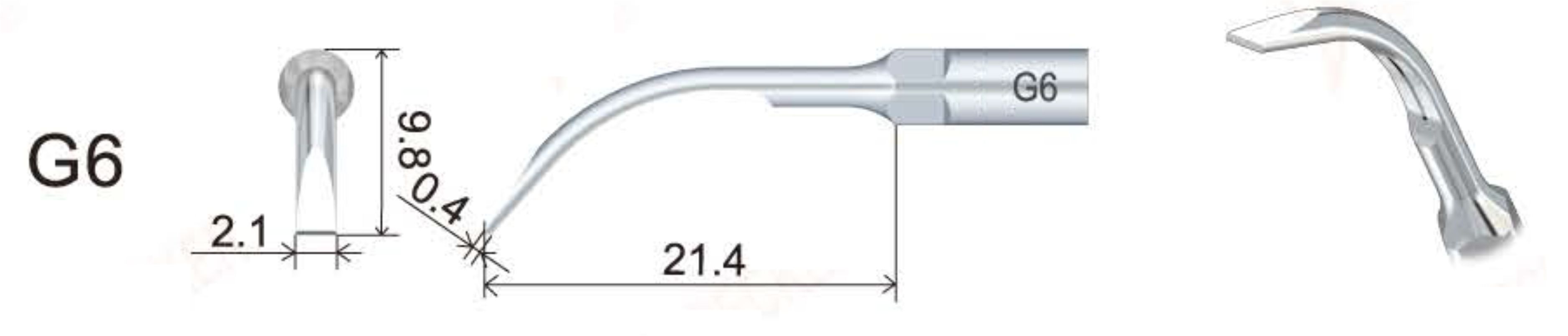 Die ZEG Spitze G6 wurde für die professionelle Entfernung von supragingivalem Zahnstein entwickelt. Dank ihrer schlanken Form ermöglicht sie eine präzise und effiziente Bearbeitung auch schwer erreichbarer Stellen.