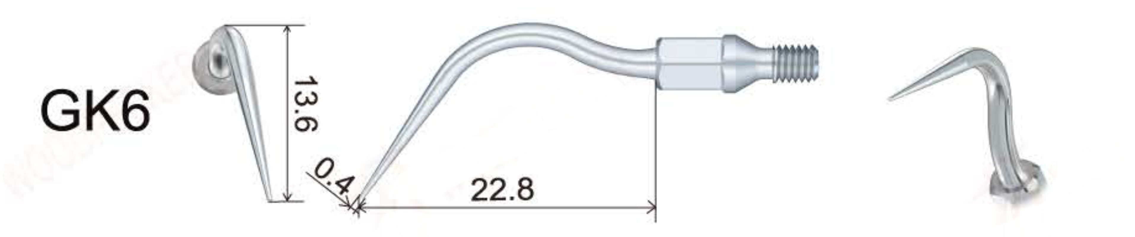 Die ZEG Spitze GK6 wurde speziell für die präzise Entfernung subgingivaler Ablagerungen entwickelt. Das linkswinklige Design ermöglicht den sicheren Zugang in schwer erreichbare Bereiche unter dem Zahnfleischsaum – ideal für die gründliche Reinigung und den professionellen Einsatz in Zahnarztpraxen.